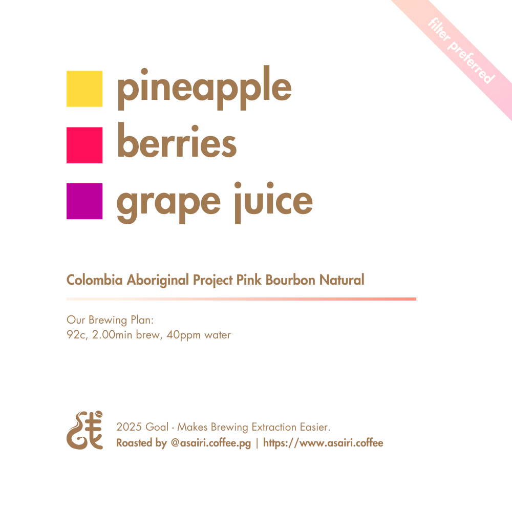 If you miss the classic Colombian coffee, this coffee might cure your crave. It has the clear traits of the terroir and good control on its natural fermentation. During hot, you can expect good ripen yellow fruits (sometimes pineapple or mango), with some berries mid-tone (mixture of raspberry and strawberry), finishing the cup with grape juices. You can expect a juicy cup when the brew is well done. I encourage you to try flat bed dripper such as Oreo, Solo Dripper or Hario Flow to achieve a vibrant acidity yet balance cup with juicy mouthfeel.