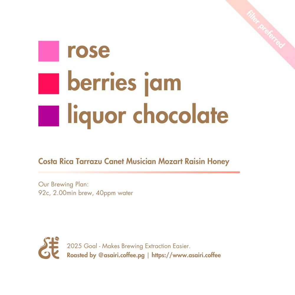 As you might already know (or not), musician series from Costa Rica is not new, but they are improving year by year. This year - the Mozart is sweeter in my cup. It gives me more floral and fruit notes like rose and complex layer of berries (sometimes we get raspberry, sometimes blueberries) jam. As it cools down, you get the signature liquor chocolate aftertaste and elegant finish. It’s very good cup of coffee for you to share with your new friends or new comers to specialty coffee scene. If you have good setup of grinder/espresso machine at home, why not try pulling a shot of it? It will gives you a very surprise shot - though you need to be mindful that the shot can run slightly fast therefore you have to grind it finer than usual.