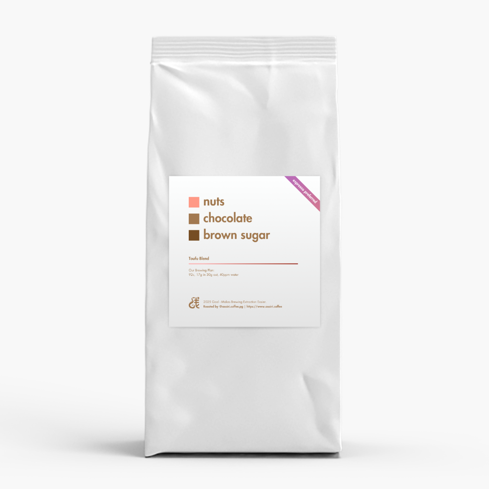 This blend request came from a friend of mine, who have just began brewing coffee from home and also traveling to her oversea home. They likes the coffee to be focused on good sweetness without bitterness. This coffee promotes balance taste with less acidic (medium roast) and also goes very well to milk coffee. Expect some nuts and chocolate flavor notes from the cup and also smooth balance finish overall.